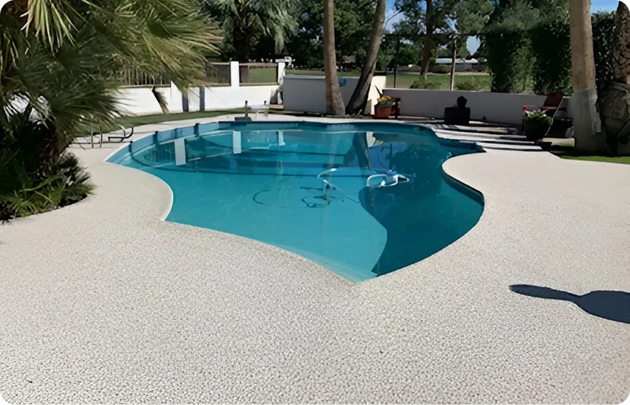 Rubber Stone combines rubber granules with a strong resin binder. It offers comfort, slip resistance, and superior durability — especially for pool decks and patios exposed to heat and water.