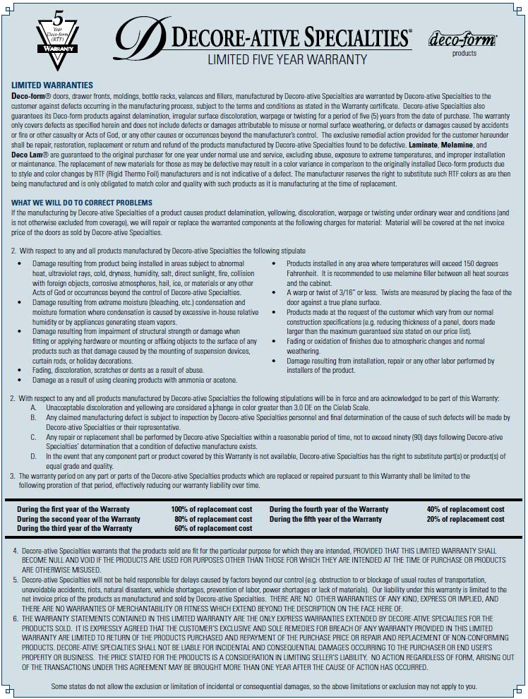 - Decore Warranty